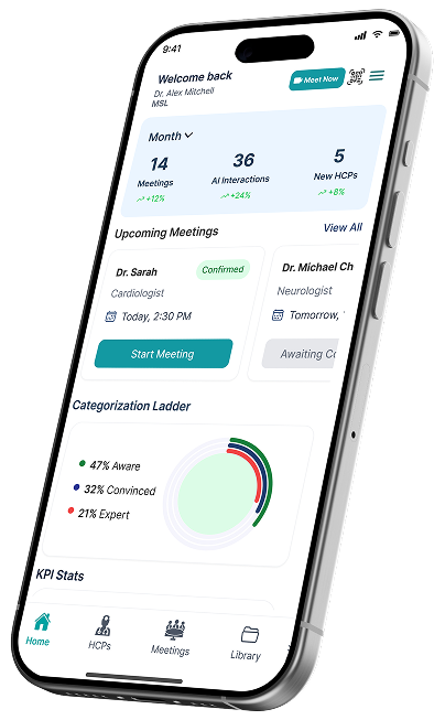 AI-generated summaries and key discussion points ensure every MSL enters meetings fully prepared and scientifically aligned.